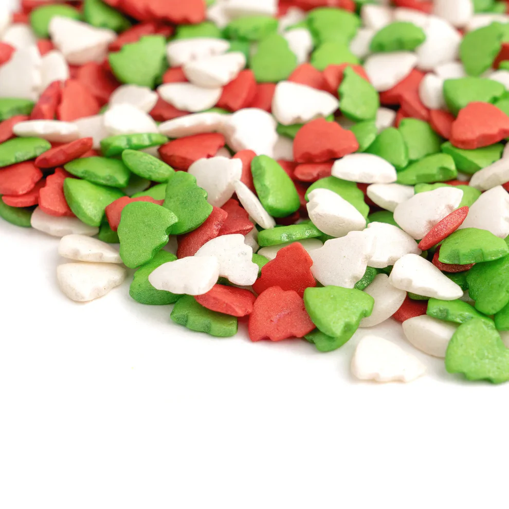 Cukrowa Posypka CHRISTMAS TREES (kolorowe choinki w odcieniu zielonym, białym i czerwonym) – 90 g – Słodki Bufet