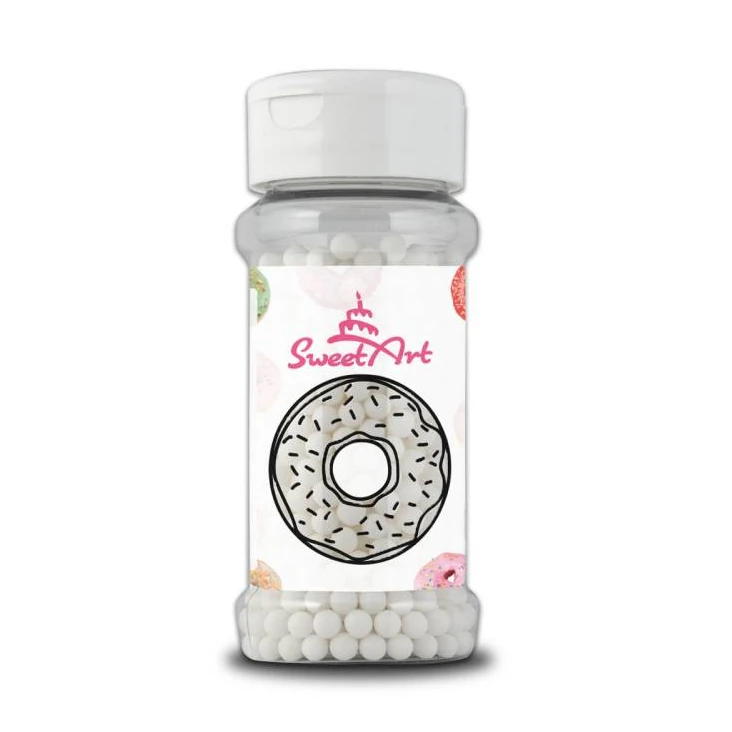 Białe kuleczki do dekoracji tortów, babeczek, ciasteczek. Średnica: ok. 0,5 cm.