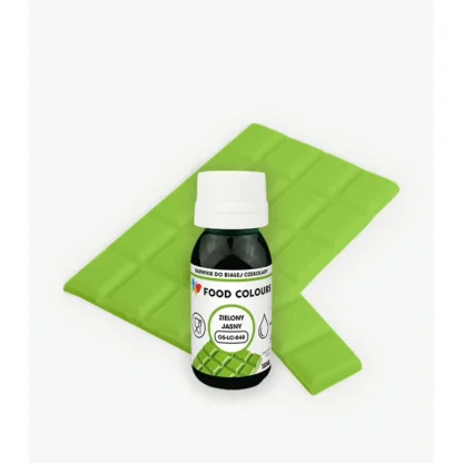 Jadalny barwnik olejowy Food Colours 18 ml – idealny do czekolady, buttercreamu i ganache. Intensywna jasna zieleń, łatwe dozowanie.