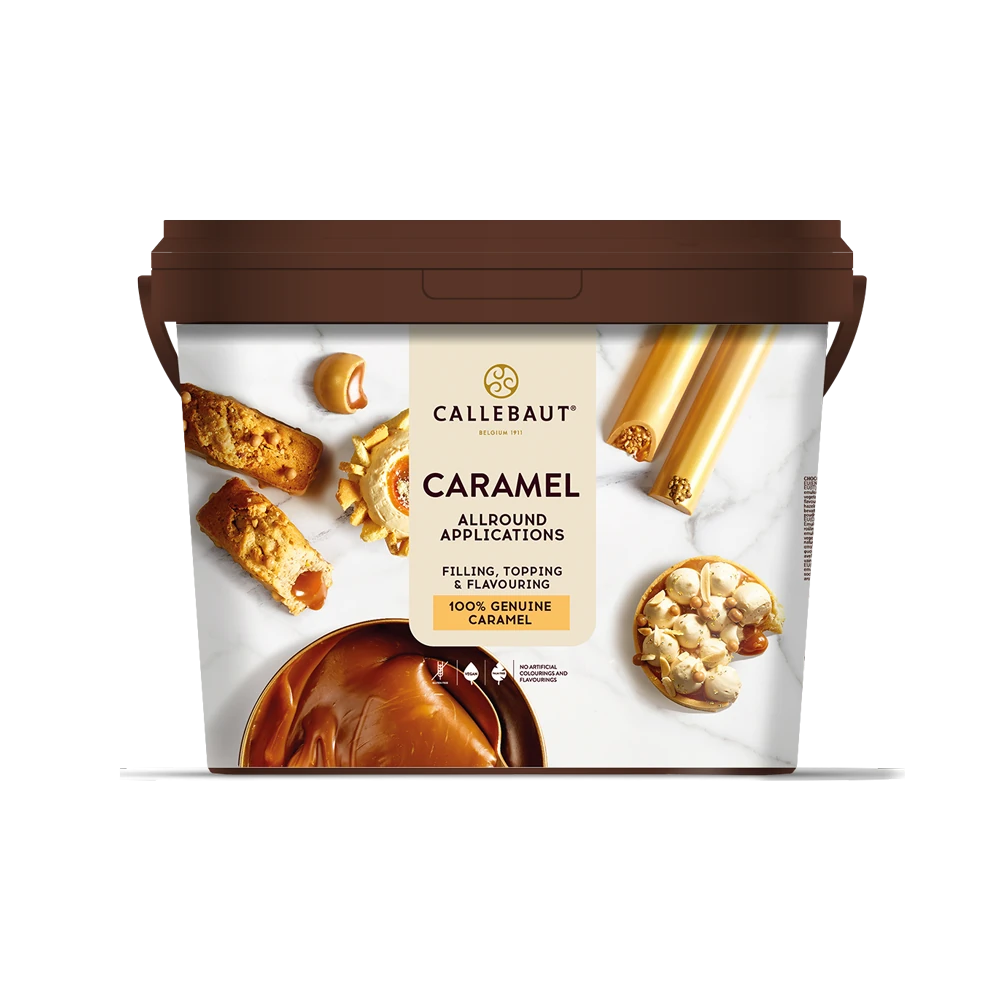 Karmel Callebaut to prawdziwy karmel o wspaniałym smaku przygotowany z najlepszych składników, bez sztucznych aromatów i barwników. Jest gotowy do użycia i zawsze pod ręką kiedy tylko będziesz potrzebować, dzięki czemu zaoszczędzisz czas. Karmel nie ciągnie się, dlatego jest idealny jako nadzienie niewielkich babeczek, pralin czy batonów. Jego konsystencja jest jednak na tyle gęsta, że sprawdzi się także jako polewa do ciast i deserów. Karmel ten jest też idealny jako dodatek do kremów i śmietanek. Ponadto karmel możesz wymieszać z solą morską, kruszonką czy z czekoladą, aby przygotować np. czekoladowe krówki. Przed użyciem wymieszaj karmel. Możesz go przy tym podgrzać do temperatury max. 30°C.