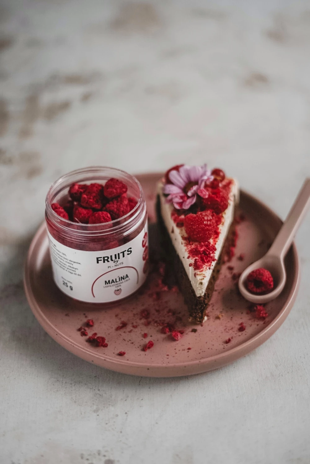 Malina liofilizowana 80 g – intensywny smak i kolor do deserów, owsianek i wypieków. Naturalne, chrupiące owoce dla pasjonatów cukiernictwa.