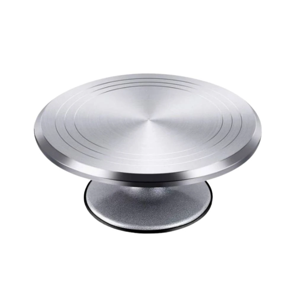 Metalowy talerz obrotowy 30,5 cm – stabilna konstrukcja z aluminium, antypoślizgowa podstawa, obrót 360° – idealny do tynkowania i ozdabiania tortów.