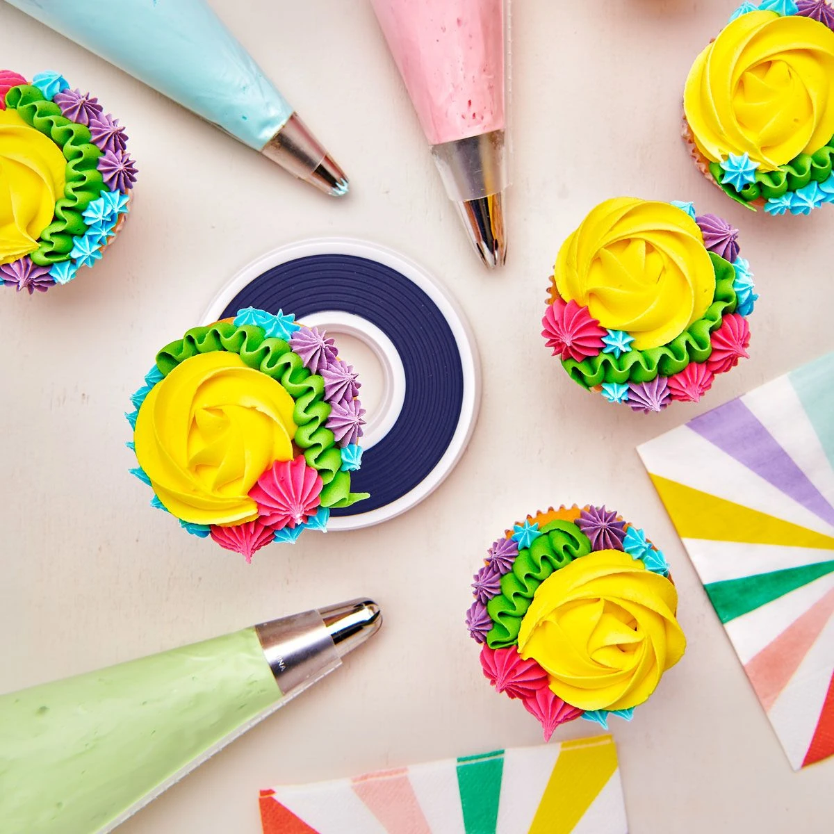 Wilton Mini Non-Slip Turntable – kompaktowy talerz obrotowy do dekoracji (idealny do babeczek, ciastek i małych tortów). Powierzchnia non-slip zapewnia, że dekorowane babeczki nie będą się ślizgać po talerzu, co pomoże Ci w precyzyjnym dekorowaniu.