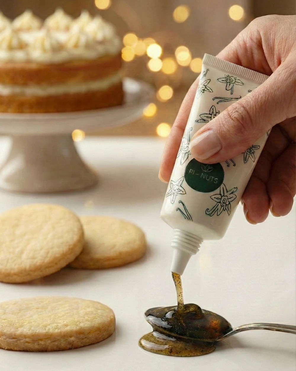 Naturalna pasta waniliowa Bourbon z Madagaskaru — wygodna aplikacja z tubki. Intensywny aromat i ziarenka wanilii: do ciast, deserów i kremów.