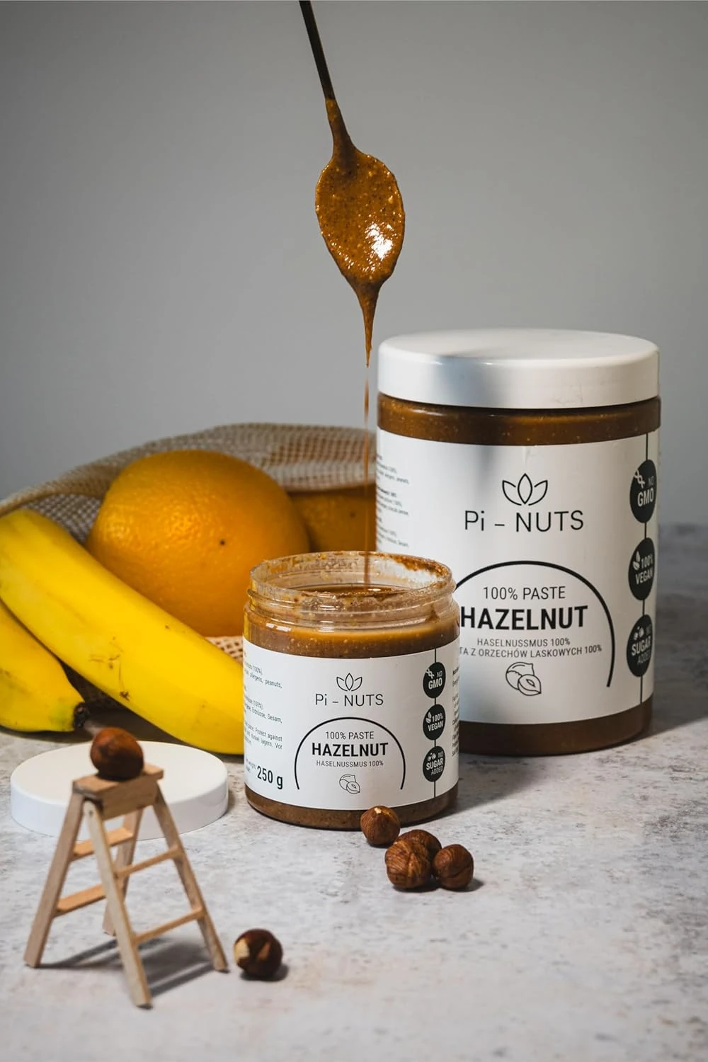 Poznaj smak autentycznej natury — pasta z orzechów laskowych 100% od Pi-NUTS to tylko jedno: prażone orzechy laskowe. Bez cukru, bez oleju palmowego, bez kompromisów. W słoiku znajdziesz czystą przyjemność dla podniebienia i pełnię wartości odżywczych.