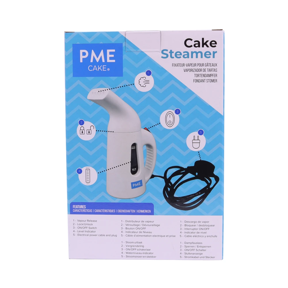 PME Cake Steamer CS501 to niezastąpione narzędzie w pracy z tortami pokrytymi masą cukrową oraz dekoracjami cukierniczymi. Umożliwia szybkie i bezpieczne usunięcie nieestetycznych śladów cukru pudru, skrobi czy mąki kukurydzianej, które często pozostają po modelowaniu i wygładzaniu powierzchni.