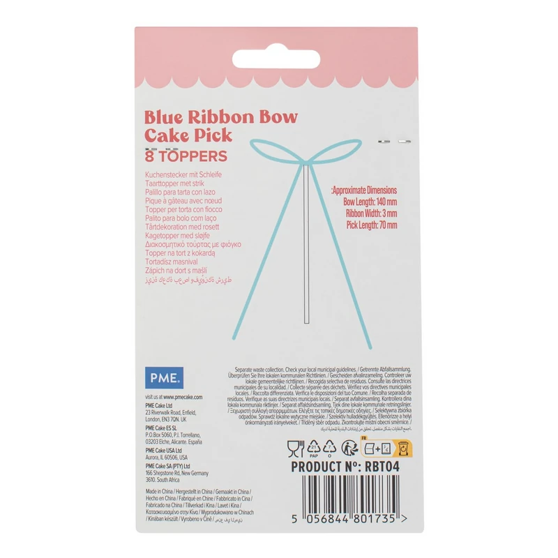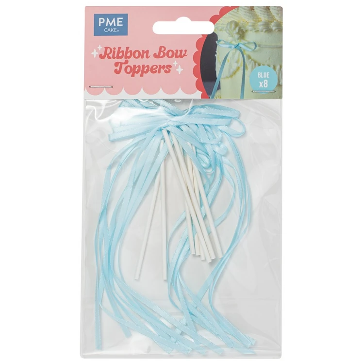 PME kokardki na tort niebieskie – topper na tort, pikery wstążki 8 szt.
