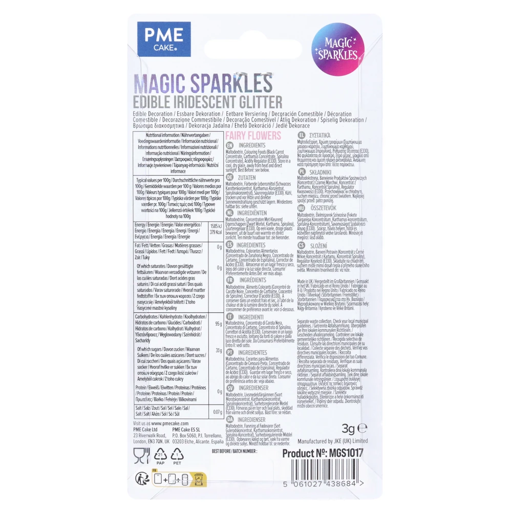 PME Magic Sparkles Fairy Flowers 3 g – Kwiaty Wróżki Jadalny Opalizujący Brokat do Dekoracji