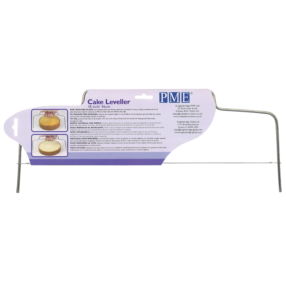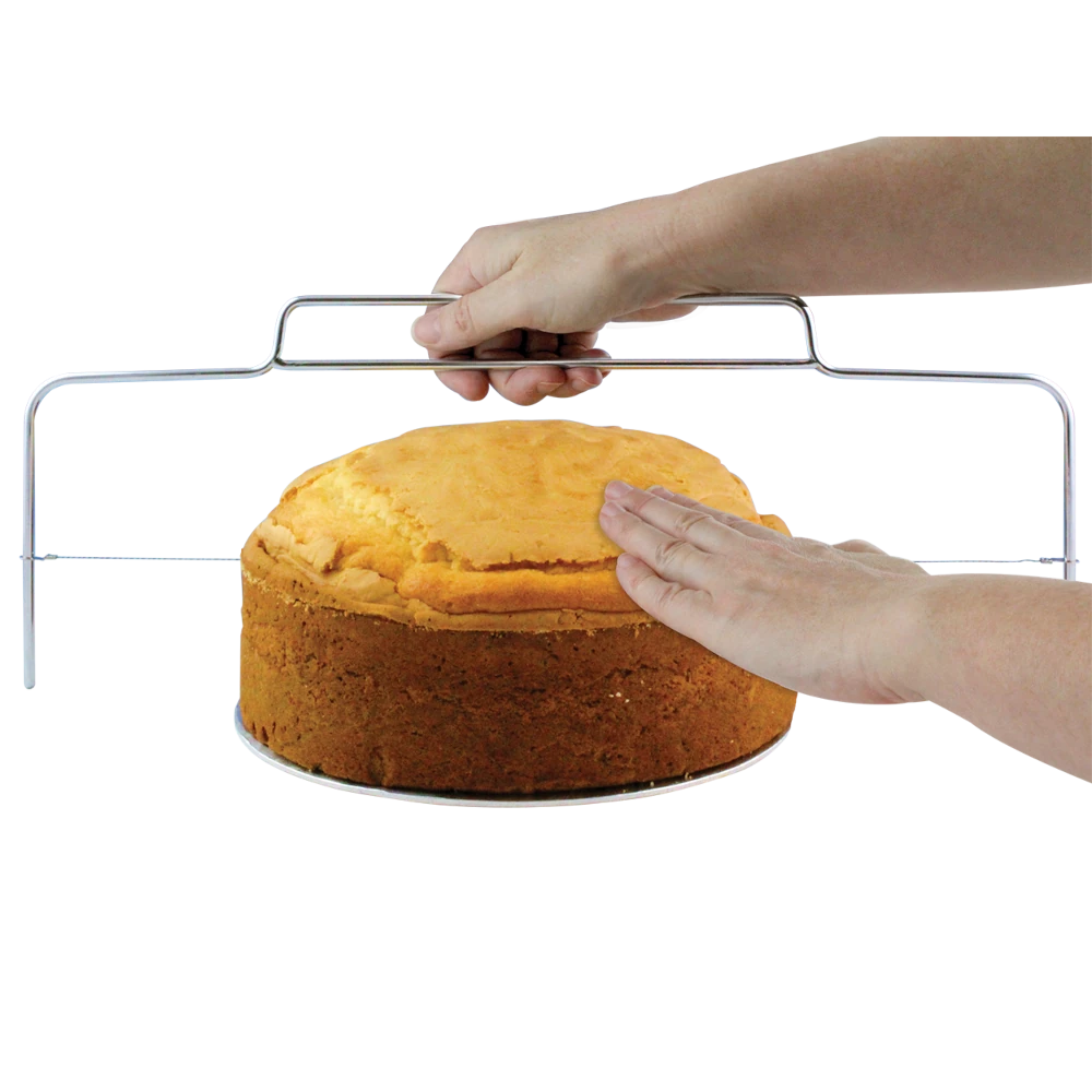 Bardzo przydatne narzędzie do równego przecinania biszkoptów. Wystarczy ustawić pożądaną wysokość i przeciąć biszkopt – zawsze równo i bez uszkodzonych krawędzi.