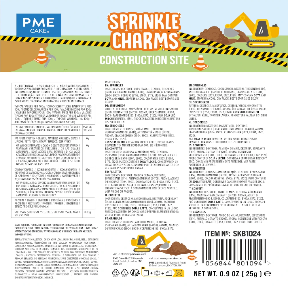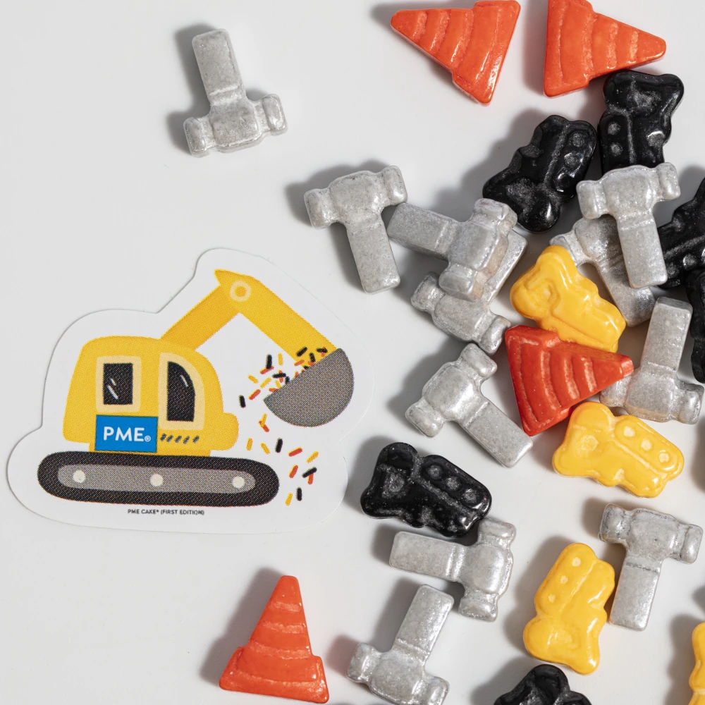 Posypki PME Budowa 25g – jadalne dekoracje na tort i babeczki z motywem znaków i narzędzi. Szybki efekt wow.