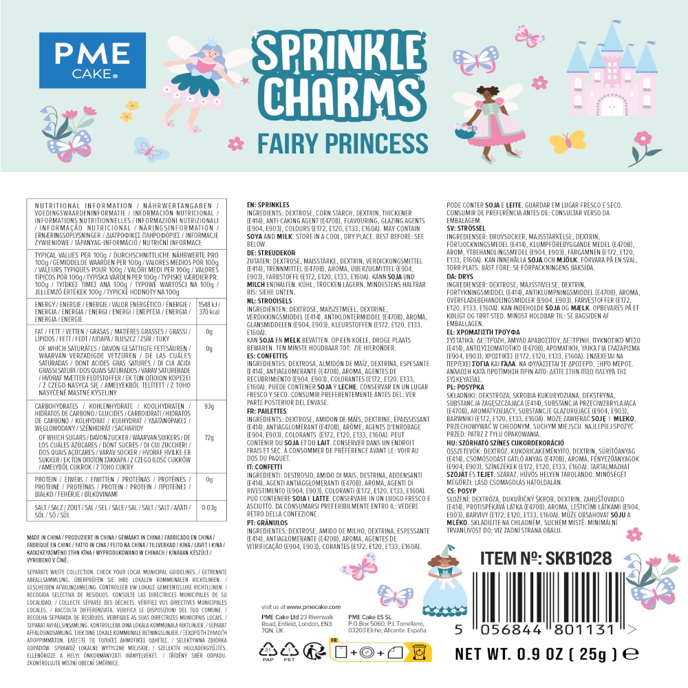 Fairy Princess PME 25g – bajkowe posypki cukrowe na tort: korony, zamek i wróżki. Idealne na princess party.