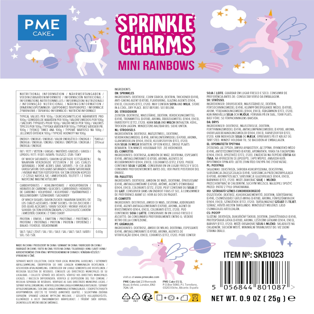 Posypki PME Sprinkle Charms to duże i efektowne posypki cukrowe, które w kilka sekund dodają wypiekom koloru, charakteru i tematycznego stylu. Dzięki wyrazistym kształtom są świetnym sposobem na szybkie wykończenie dekoracji – nawet prosty tort lub deser zyskuje profesjonalny wygląd.