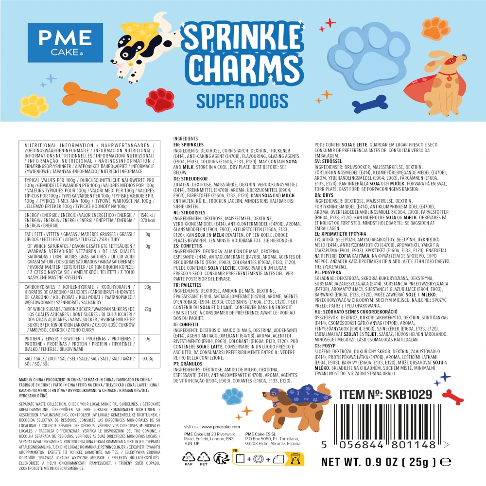 Super Dogs PME 25g – posypki cukrowe na tort w kształcie łapek. Idealne na dog party, babeczki i desery.