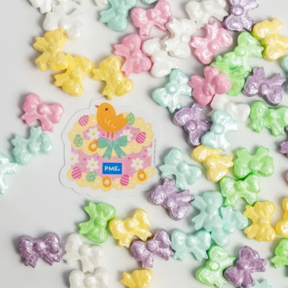 Pastelowe kokardki PME 25g – perłowe posypki cukrowe na tort, babeczki i desery. Subtelny, elegancki efekt.