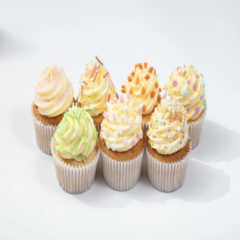 Najlepszy efekt uzyskasz, gdy posypki umieścisz na świeżym kremie, polewie czekoladowej lub lukrze – dzięki temu dobrze się przykleją i będą pięknie widoczne na wypieku.