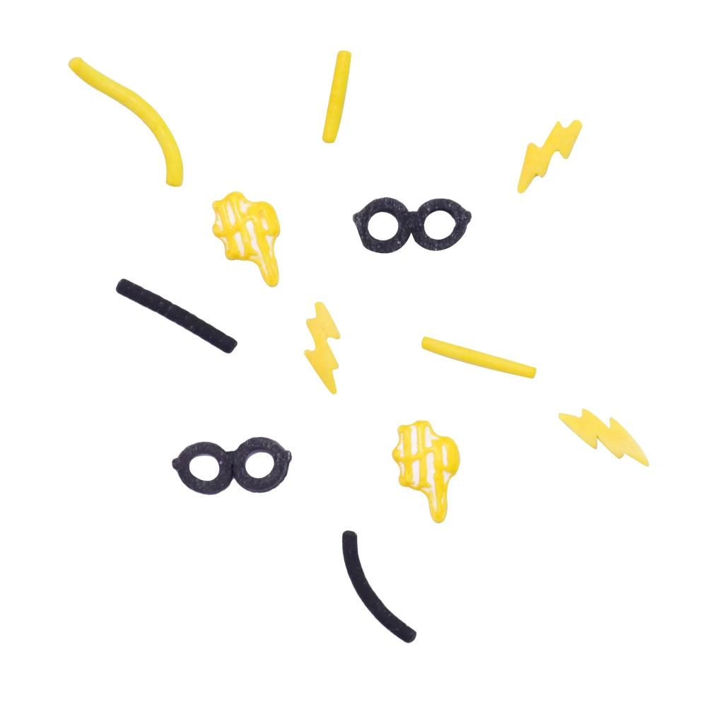 Stwórz prawdziwie czarodziejskie wypieki dzięki posypce cukrowej Harry Potter od PME. Ten kolorowy mix dekoracyjny do tortów i babeczek łączy symbole znane z kultowej książki. Są to m. in. symbol błyskawicy, znaczek HP, okulary a ponadto dopasowane kolorystycznie makaroniki.