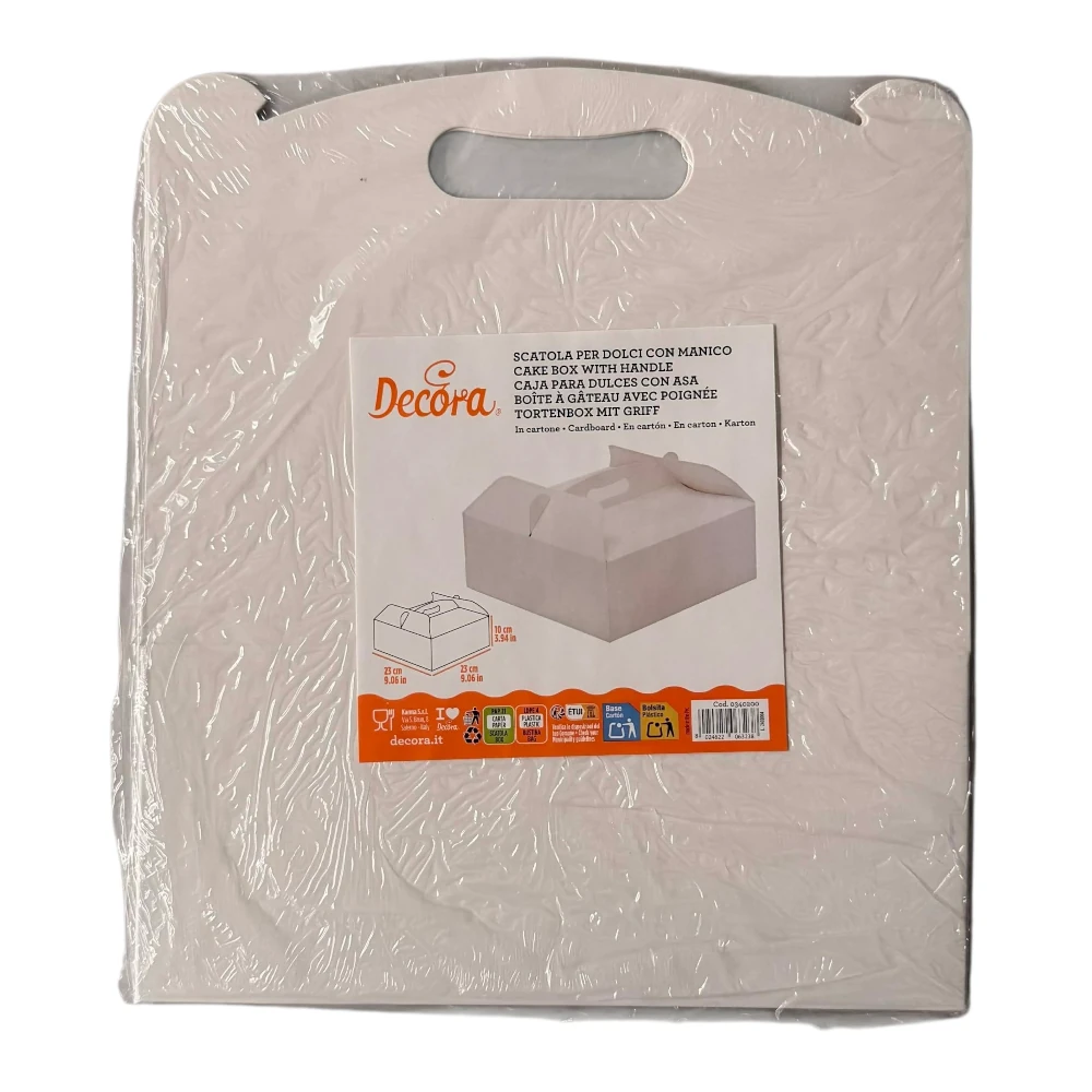 Pudełko na tort z rączką 33,5×33,5×12 cm Decora. Wygodne opakowanie na ciasto i słodkości, idealne do transportu i sprzedaży.