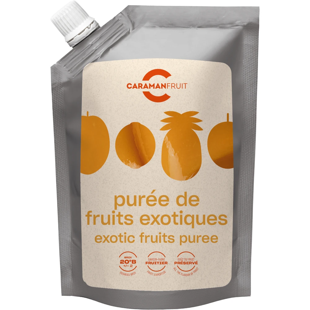 Odkryj premium puree owocowe z Owoców egzotycznych (ananasa, mango, marakui i limonki) od Carmanfruit – bez sztucznych dodatków, pełne autentycznego smaku. Idealne do deserów, monoporcji, koktajli i lodów.