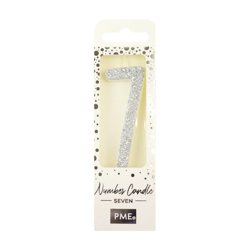 Srebrna Świeczka z Brokatem – Cyfra 7 – PME
