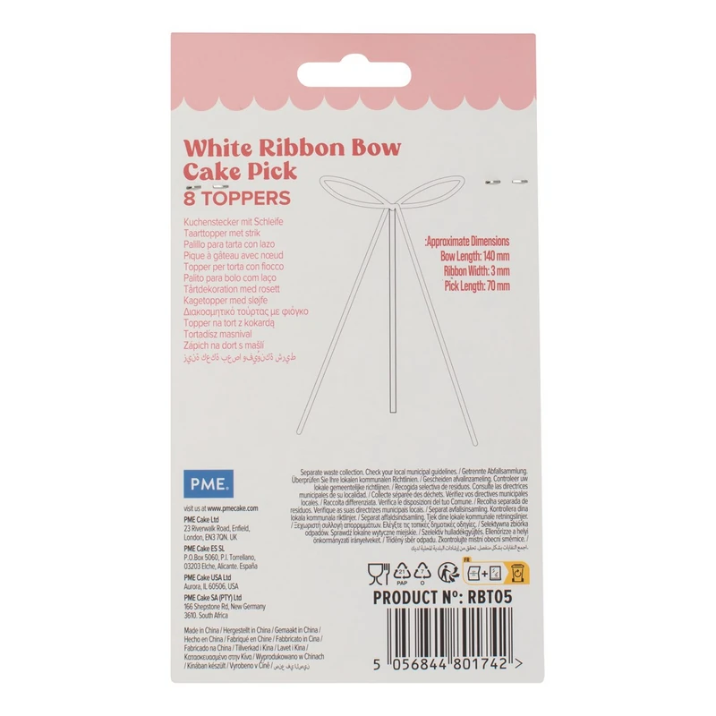 PME kokardki na tort białe – topper na tort, pikery wstążki 8 szt.