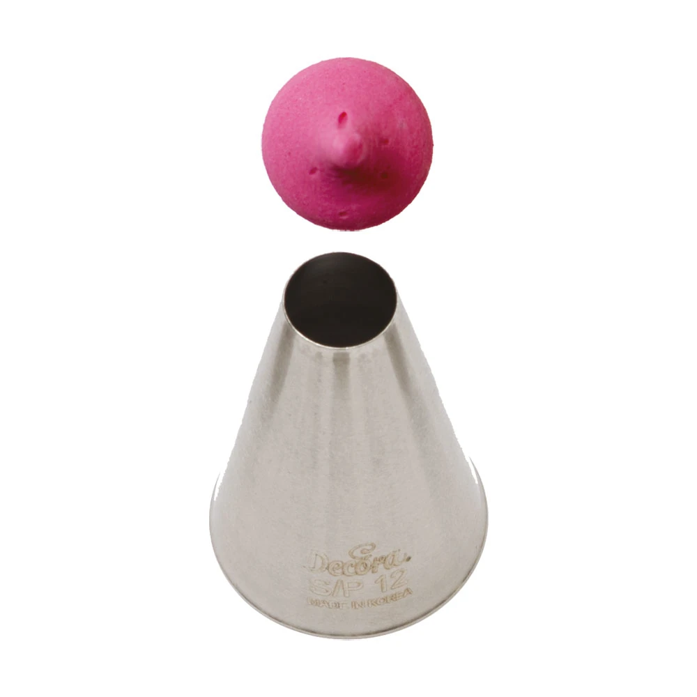 Tylka Okrągła Duża bez szwów. Średnica wylotu: 12 mm. Idealna do ozdabiania tortów i babeczek kremem lub śmietaną.