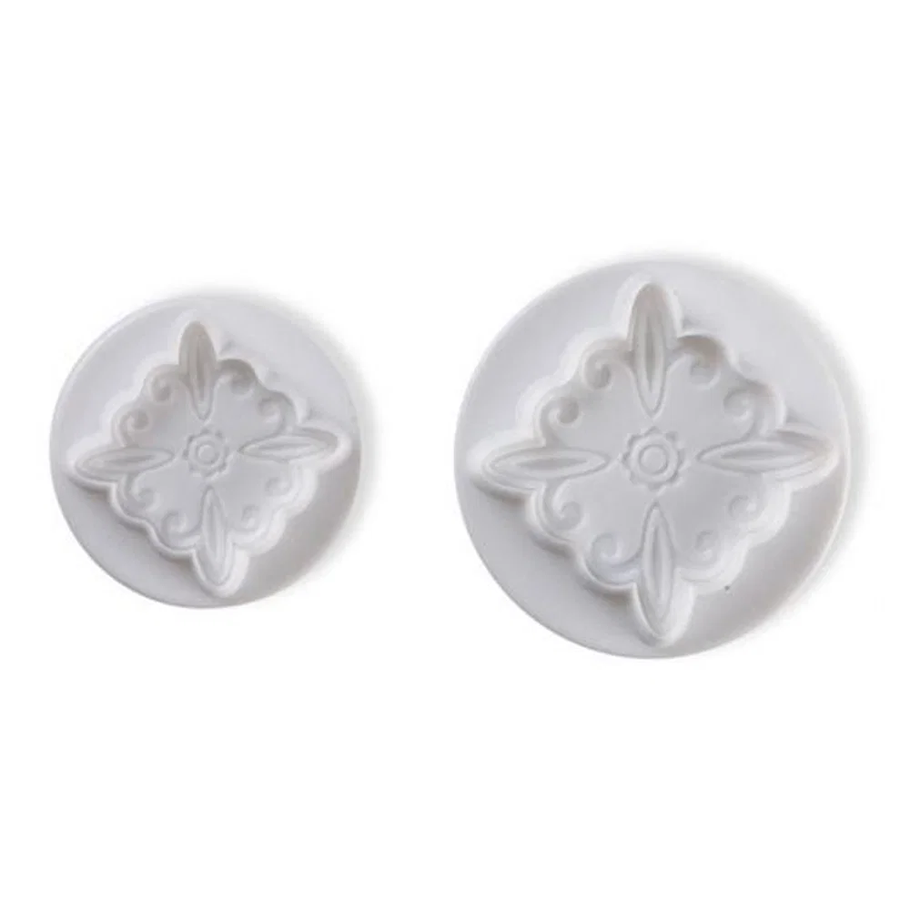 Wykrawaczki z tłoczkiem ornament kwadratowy 2 szt – Pavoni. Twórz eleganckie dekoracje z masy cukrowej szybko i precyzyjnie.