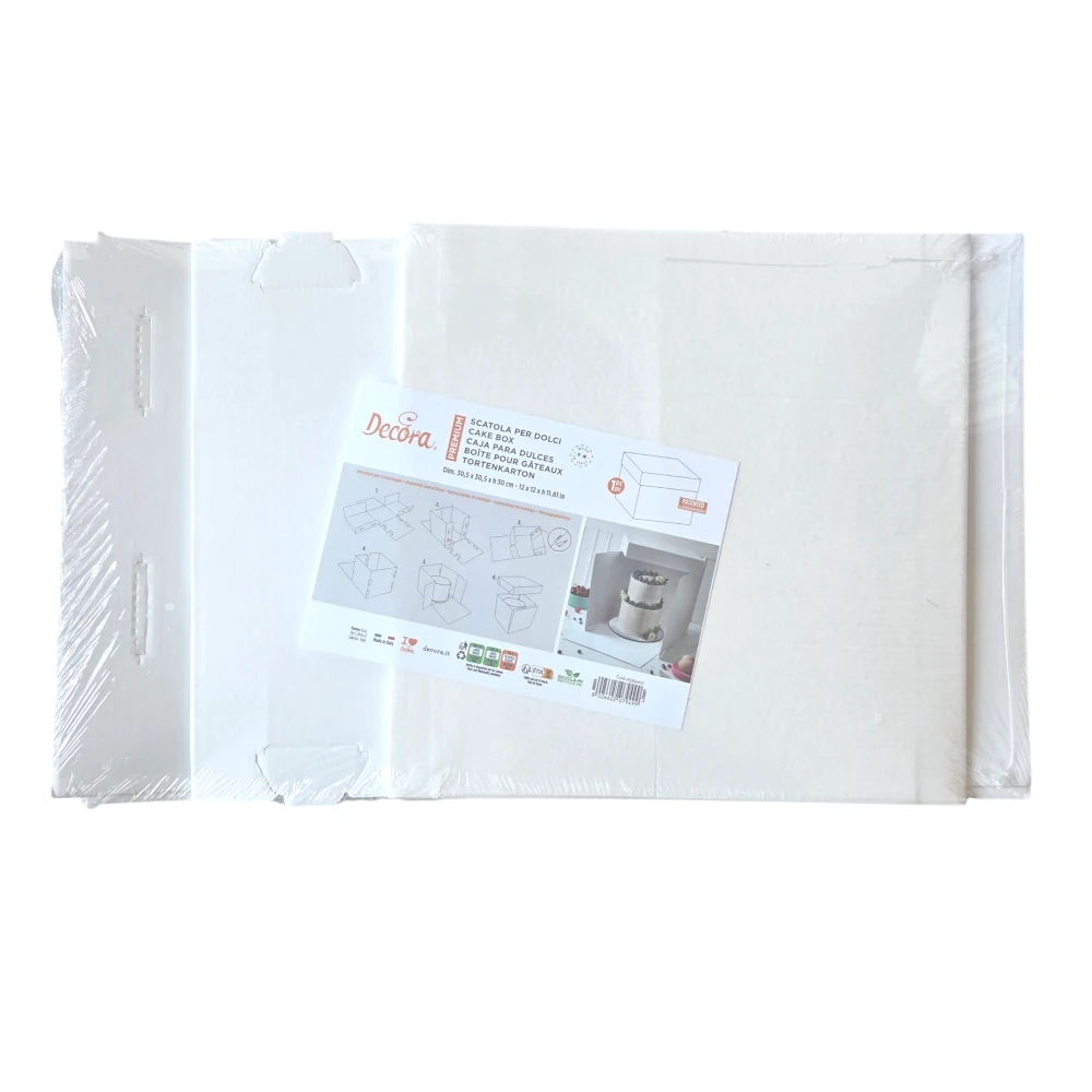 Profesjonalne dwuczęściowe pudełko na tort z innowacyjnym systemem otwierania 30x30x30 cm – model patentowy Decora – made in Italy