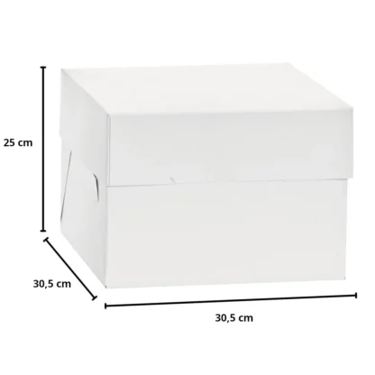 Karton o wymiarach 30,5 x 30,5 x 25 cm jest praktycznym wyborem do tortów na podkładzie 30 cm.
